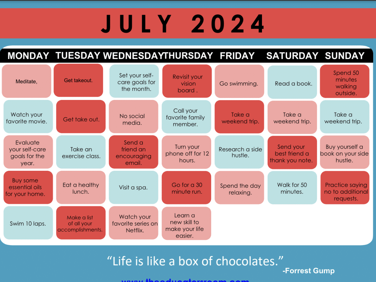 July Self-Care Calendar